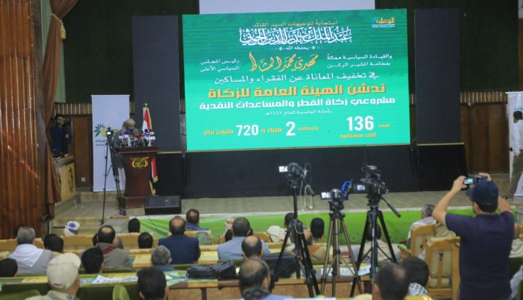 من جانبه أشار رئيس الهيئة العامة للزكاة الشيخ شمسان أبو نشطان، إلى أن مشروع زكاة الفطر والمساعدات النقدية الذي يصل خيره لـ 136 ألف أسرة من الأسر الفقيرة في أمانة العاصمة من أهم المشاريع التي أصبحت اليوم تصرف لا مركزيًا عبر مكاتب الهيئة بالمحافظات.