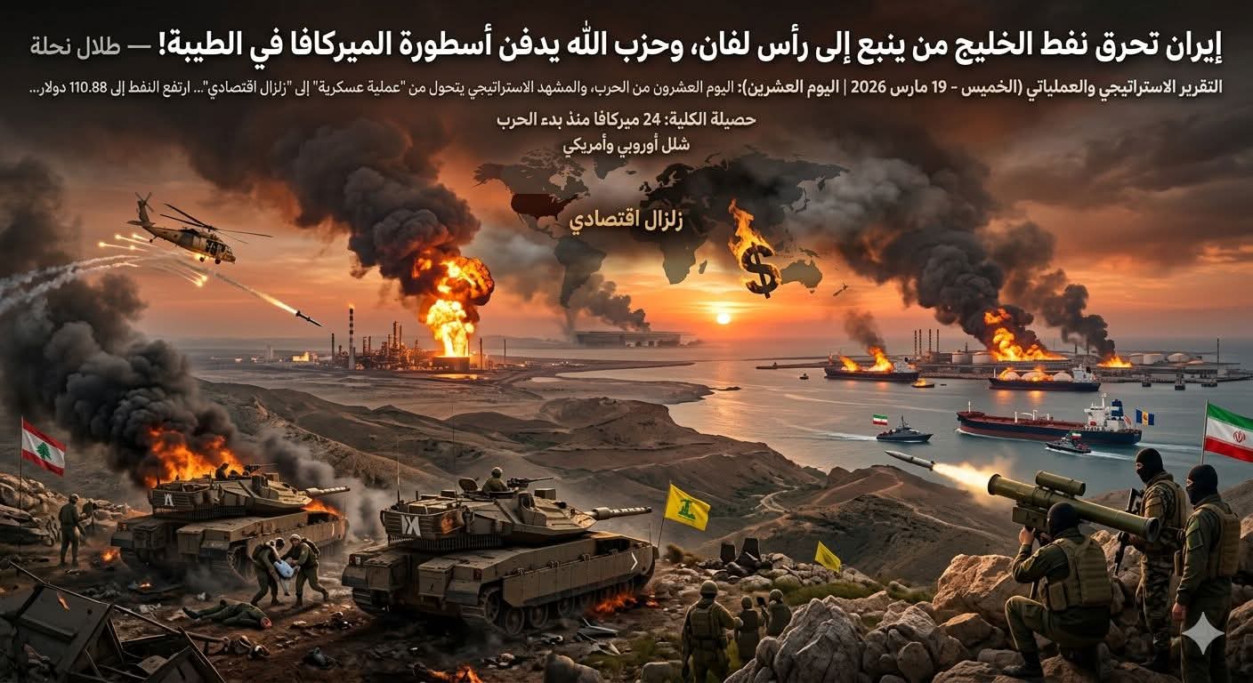 * محور المقاومة: قلب الطاولة تماماً. إغلاق هرمز، ضرب ينبع ورأس لفان، وتدمير 26 ميركافا في لبنان، يثبت أن المحور يمتلك “طول النفس” العسكري، ويدير معركة استنزاف اقتصادية كبرى كبدت العالم حتى الآن مئات المليارات.