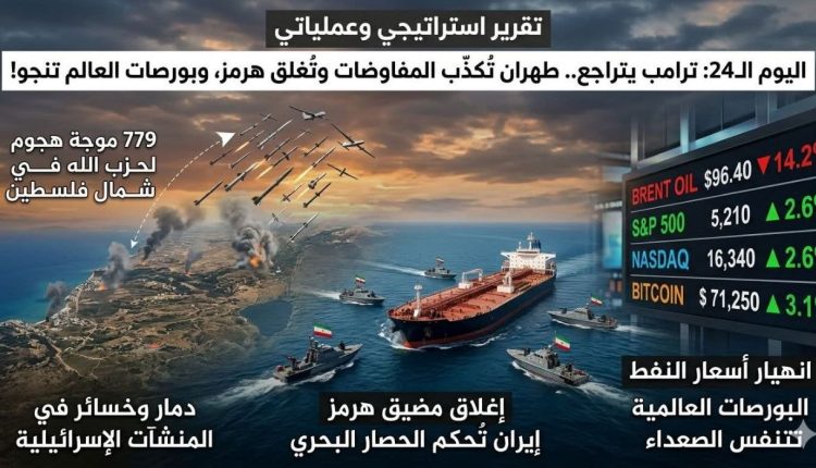 ترامب “ينزل عن الشجرة” بوهمِ المفاوضات.. طهران تُكذّبه وتُحكم إغلاق هرمز، وبورصات العالم تتنفس الصعداء بينما تغرق إسرائيل في 779 موجة لحزب الله!