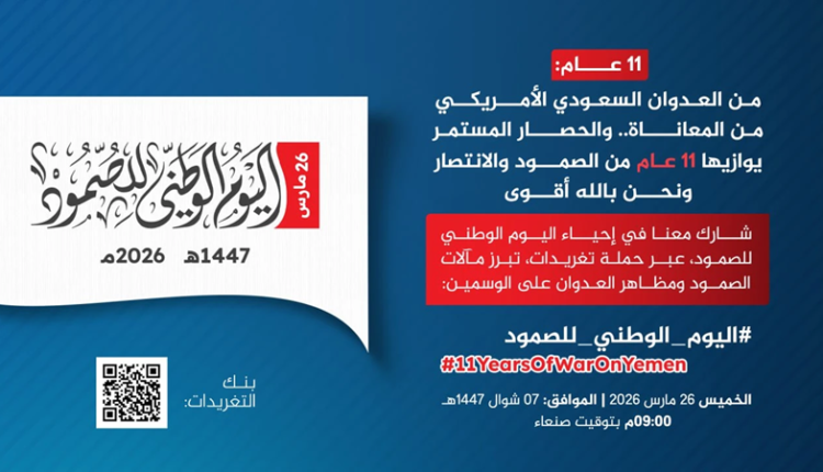 تنطلق في الساعة التاسعة من مساء اليوم، حملة تغريدات على موقع التواصل الاجتماعي “إكس” إحياء لليوم الوطني للصمود 26 مارس.