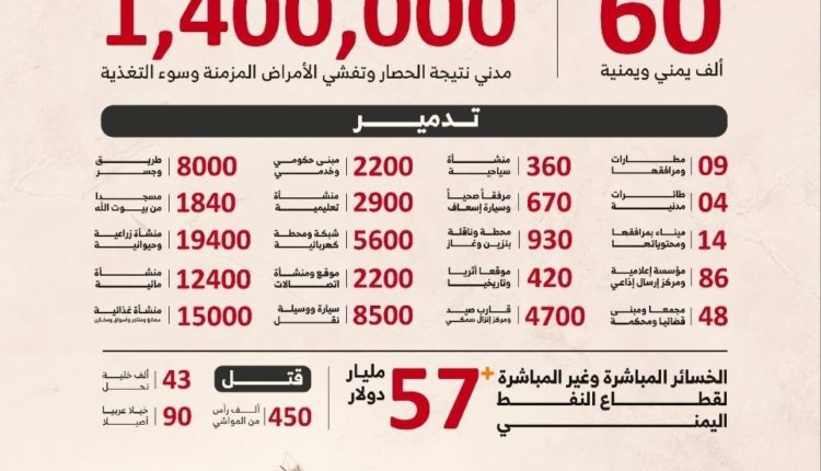 – استشهاد وجرح 60 ألف يمني ويمنية.