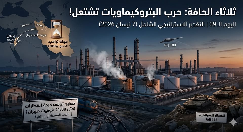 تشرق شمس “الثلاثاء الموعود”، اليوم الذي حدده ترامب كـ “يوم محطات الطاقة والجسور”. الساعات تمر ثقيلة، والفجوة بين واشنطن وطهران تتسع بشكل لا يمكن ردمه قبل الثامنة مساءً (بتوقيت واشنطن). الميدان يتكلم لغة الإبادة المتبادلة؛ إسرائيل تستبق المهلة بـ “حرب بتروكيماويات” مدمرة لضرب شريان الاقتصاد الإيراني، وتُوجه إنذاراً نفسياً غير مسبوق بتوقيف قطارات إيران. وفي المقابل، طهران ومحورها يُشعلون السماء الإسرائيلية من إيلات إلى كريات شمونة بالصواريخ، بينما تتهاوى دروع الجيش الإسرائيلي في جنوب لبنان إلى رقم قياسي جديد (172 آلية).