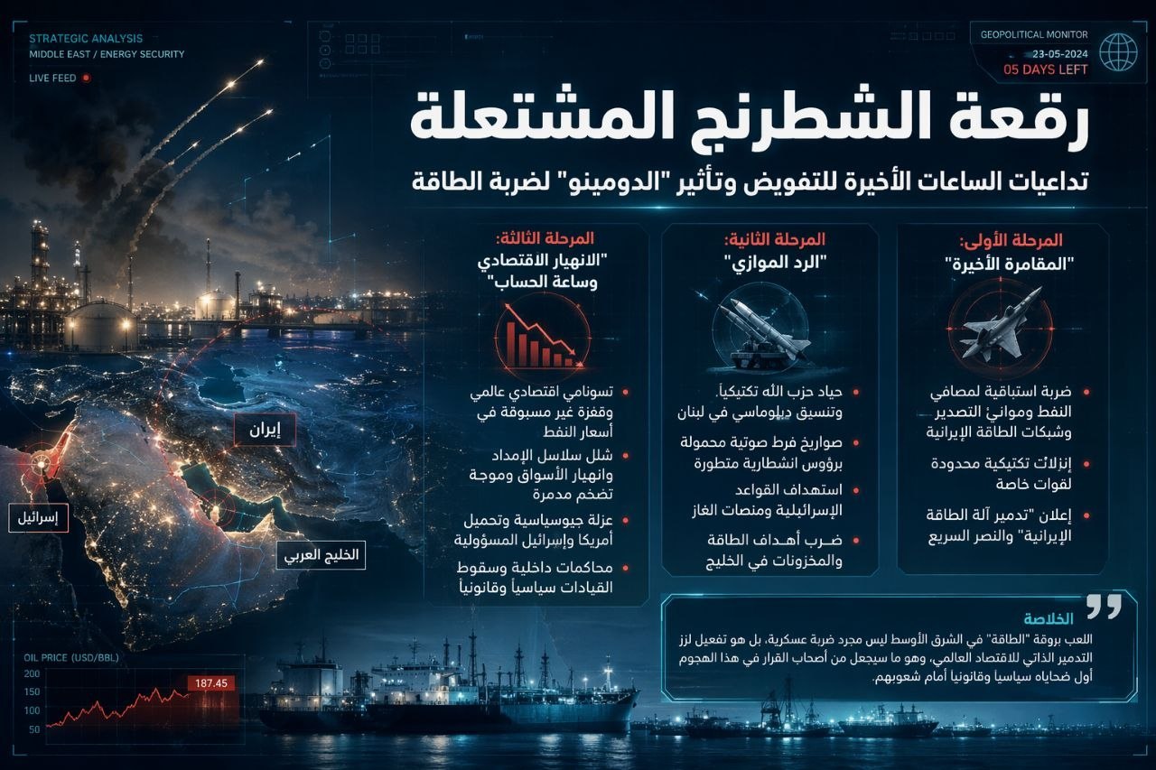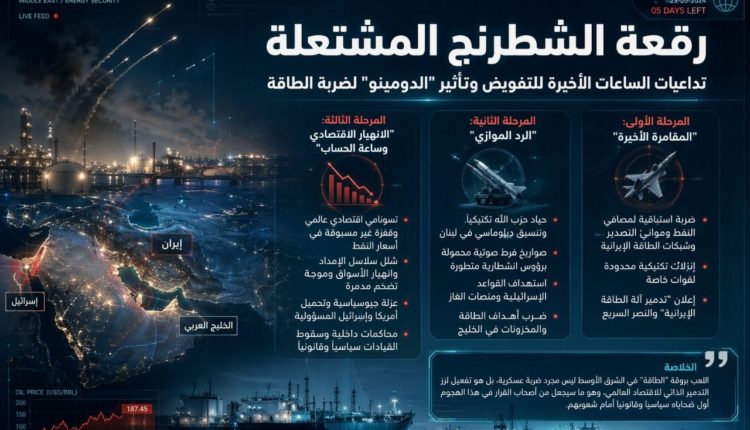 السيناريو يفترض أن “الانتصار التكتيكي السريع” الذي يبحث عنه القادة الشعبويون لغايات سياسية قصيرة الأمد، غالباً ما يُعميهم عن “العمى الاستراتيجي” لتداعياته. اللعب بورقة “الطاقة” في الشرق الأوسط ليس مجرد ضربة عسكرية، بل هو تفعيل لزر التدمير الذاتي للاقتصاد العالمي، وهو ما سيجعل من أصحاب القرار في هذا الهجوم أول ضحاياه سياسياً وقانونياً أمام شعوبهم.