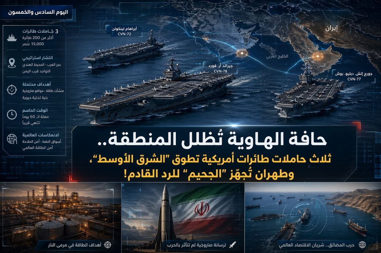 اليوم السادس والخمسون: حافة الهاوية تُظلل المنطقة.. ثلاث حاملات طائرات أمريكية تطوق “الشرق الأوسط”، وطهران تُجهّز “الجحيم” للرد القادم!