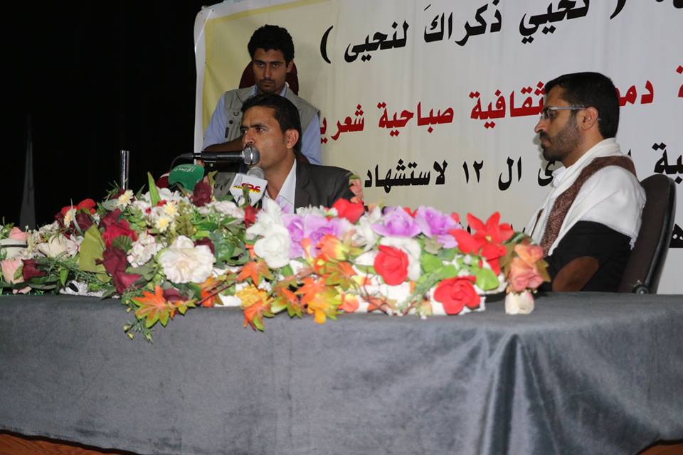 أحيت مؤسسة دمون الثقافية بالعاصمة صنعاء، صباحية شعرية تحت شعار “نحيي ذكراك لنحيى” بمناسبة الذكرى السنوية ال12 للشهيد القائد حسين بدر الدين الحوثي .