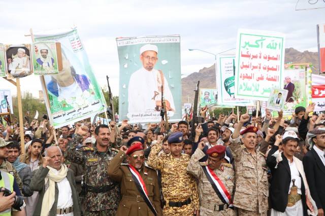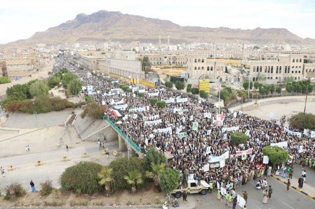 وفي بيان المسيرة الجماهيرية التي انطلقت عصر اليوم بحضور رئيس اللجنة الثورية العليا محمد علي الحوثي وعدد من العلماء والسياسيين والعسكريين أكد المشاركون على الوفاء لدماء الشهداء، والوقوف صفا واحد في مواجهة العدوان احتراما لدماء الشهداء وتقديرا لتضحياتهم.