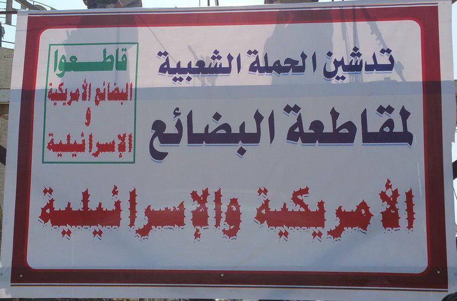 ودعا البيان السلطات المحلية في جميع المحافظات إلى تدشين الحملة الشعبية لمقاطعة البضائع الأمريكية والإسرائيلية، بالإضافة إلى دعوة التجار والباعة إلى عدم استيراد البضائع والمنتجات الأمريكية والإسرائيلية.