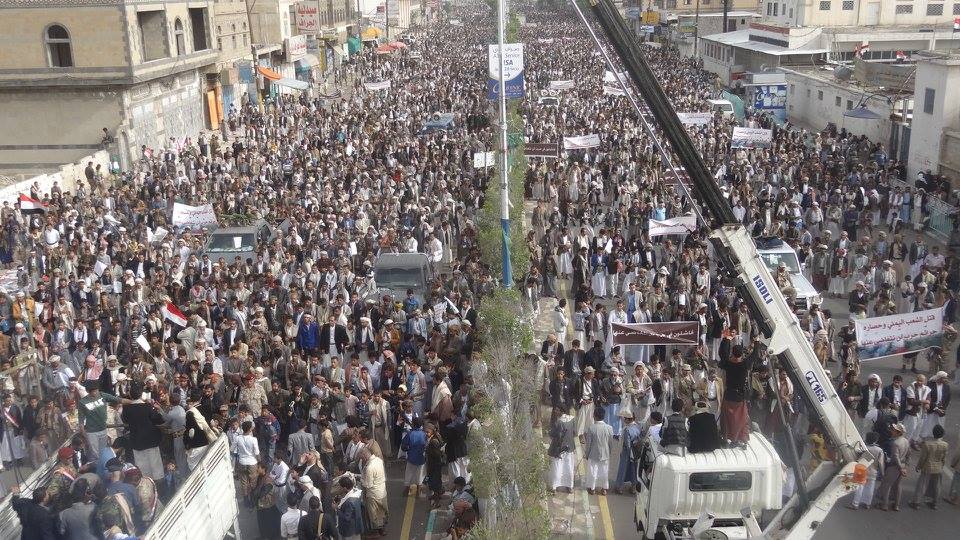 Thousands of people marched in the streets of Sana’a, in the afternoon on Friday, under the slogan “Together against the Aggression and those supporting it at home or abroad”. The marchers called for an end to the brutal Aggression and siege imposed on Yemen and expressed their continuing steadfastness in the face of the Saudi-led Aggression. The marchers also reaffirmed the cohesion of all Yemenis, after the disappointed Saudi-led coalition targeted Yemen’s archaeological and historical monuments.
