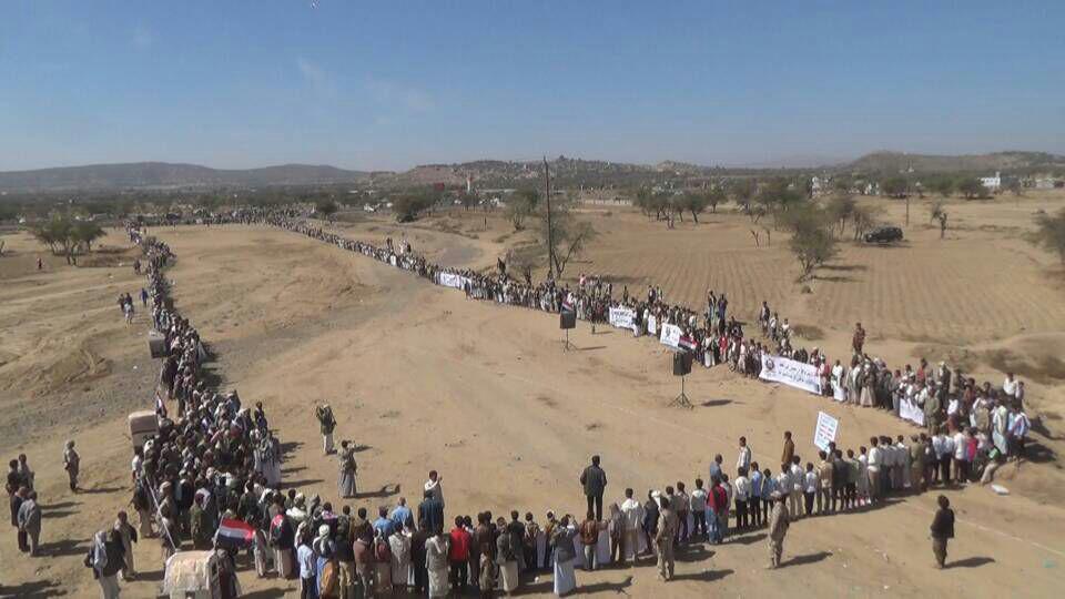 جاء ذلك خلال وقفة جماهيرية حاشدة نظمها ابناء المديريتين اليوم بحضور وزير الدولة نبيه ابو نشطان والمشرف العام بالمحافظة صالح حاجب ووكلاء المحافظة وقيادات انصار الله والمؤتمر حيث اكد المشاركون في الوقفة مواصلة الصمود والتصدي للعدوان مهما استمر وتسيير القوافل من المال والرجال والعتاد الى جبهات العزة والشرف .